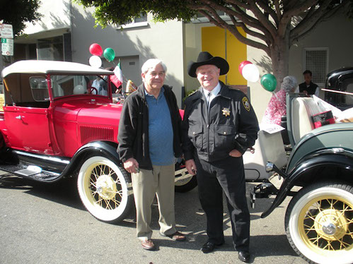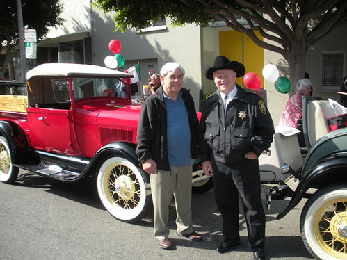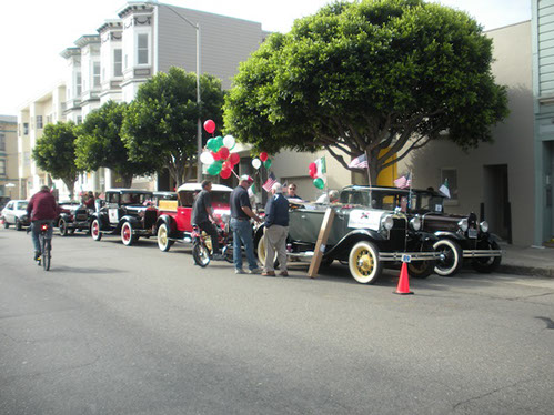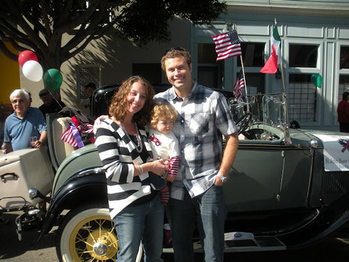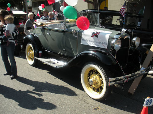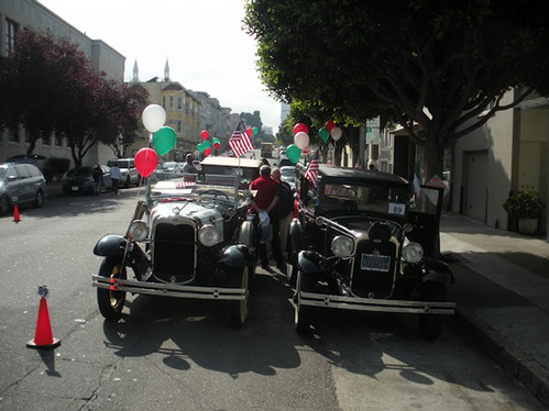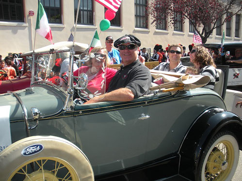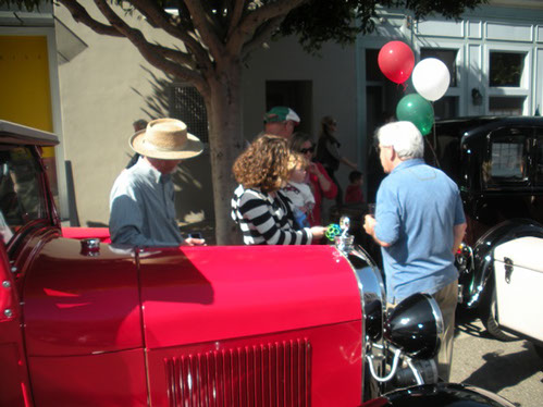 The Italian Heritage/Columbus Day Parade turned out to be a great day for all who attended. The weather couldn’t have been better. We had five Model A’s, Nell’s beautiful convertible T-Bird, John Bettencourt’s ‘32 Roadster, and Chris Thompson and Maria’s parade debut of their new acquired Morris Minor. Gary and Cheryl Barrango’s one year-old grandson Vincent rode in the rumble seat of the family’s 1930 Roadster with his parents Janelle and Bryan.