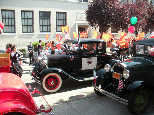 At the end of the parade everyone was treated to a refreshing glass of wine presented by “Julius Caesar” from North Beach Restaurant before passing by the reviewing stands. After the parade a number of members enjoyed a good Italian meal at Caesars Restaurant while others continued to enjoy the festivities and carnival going on at Saints Peter and Paul Church and the Ferrari show in Washington Square.