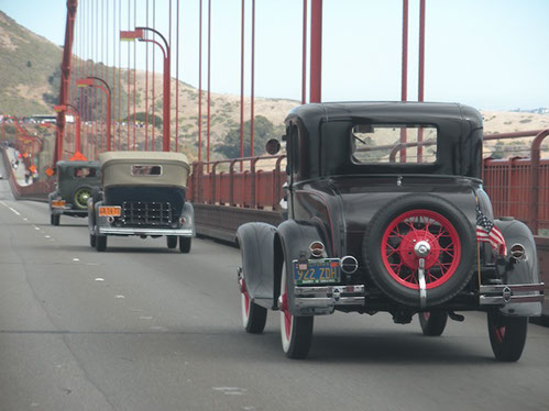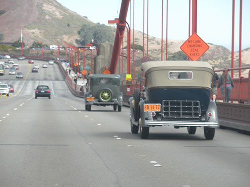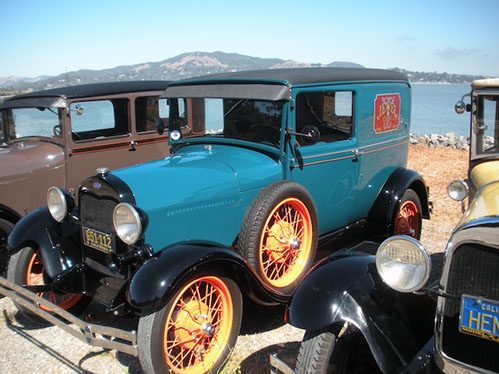We crossed the Golden Gate Bridge for the third year to join our Marin A's hosts for their Oktoberfest at the Marin Rod & Gun Club. We gathered with close to thirty other Model A's from the Sonoma A's, Napa A's, and El Camino A's for a sunny Saturday afternoon picnic. The weather was fabulous, the company delightful, and the barbecue meats and beans and great variety of homemade salads and desserts were divine.