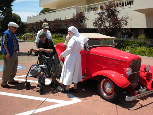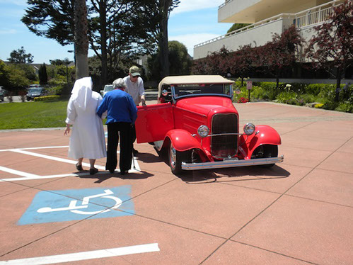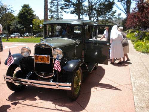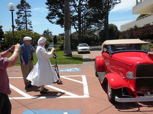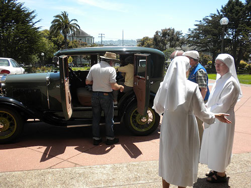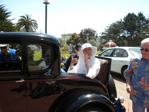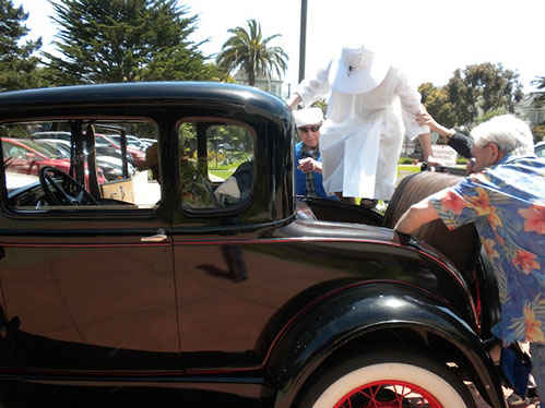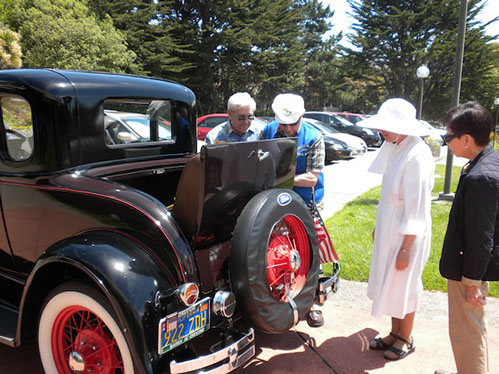 John Bettencourt and Mike Cunneen brought the most popular rides. Everyone liked the sporty open car look. There is something about the wind in your face that makes the ride feel more real. Mike broke away from an El Camino A’s tour to join us at St. Anne’s. We were glad to see him come. His car can hold four people easily without to much bending and stretching to get in and out.