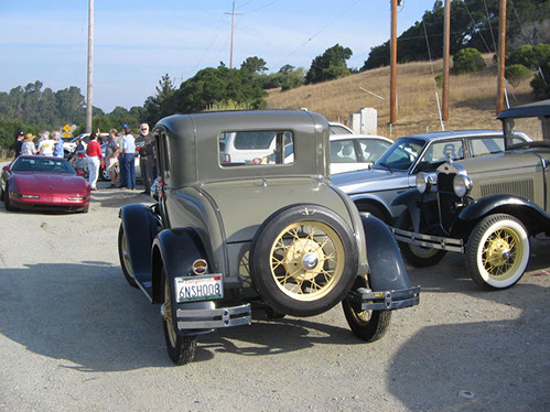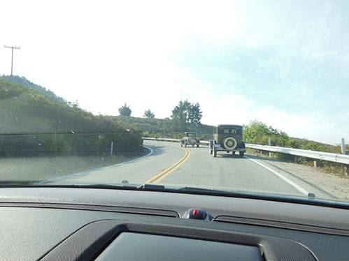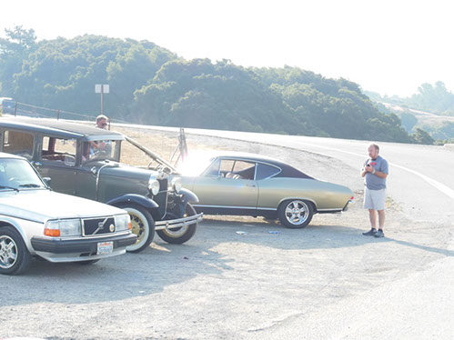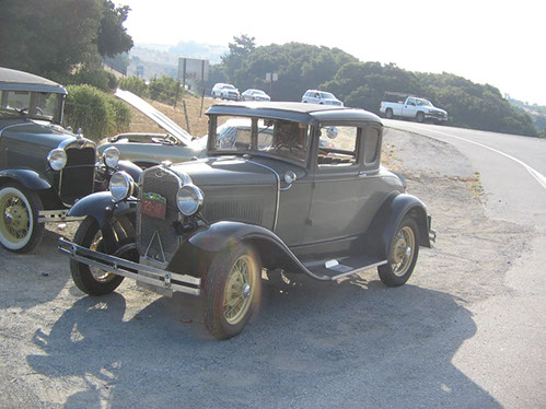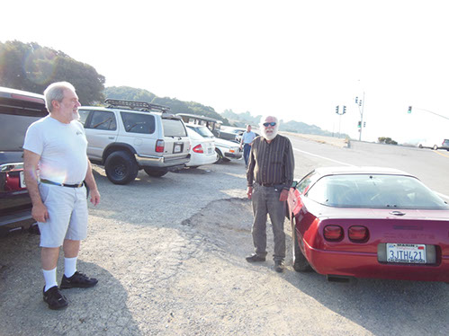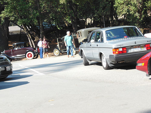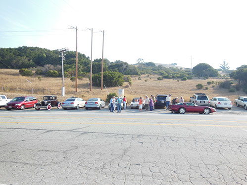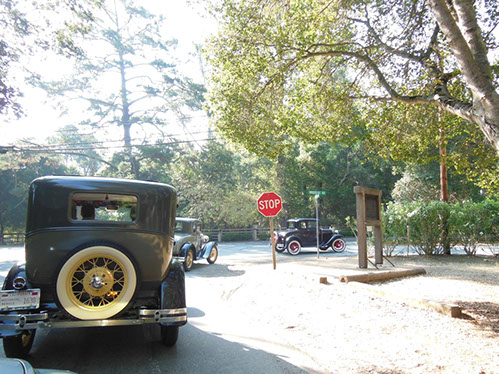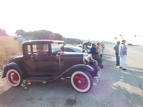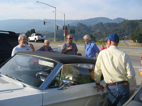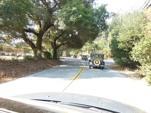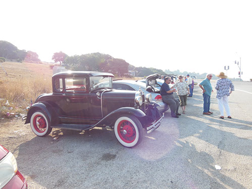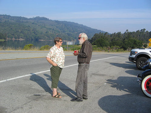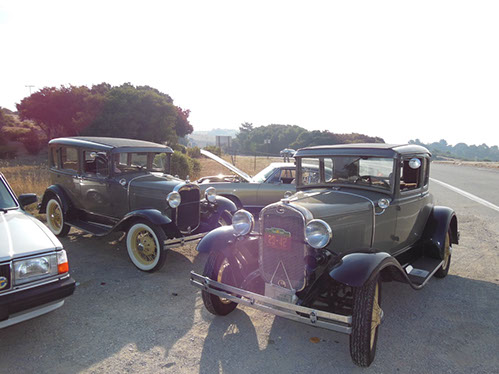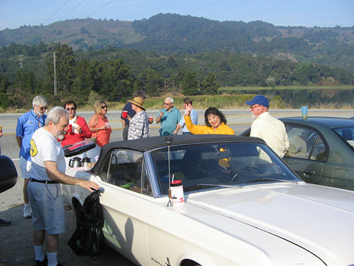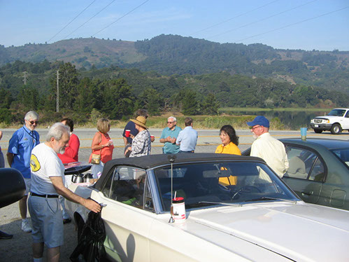 We started the day with traditional doughnuts and coffee at our meeting spot adjacent to Crystal Springs Reservoir. The vehicle count included three Model A Fords and a mixture of more modern makes that together totaled to about nine cars.