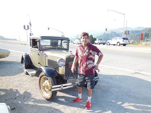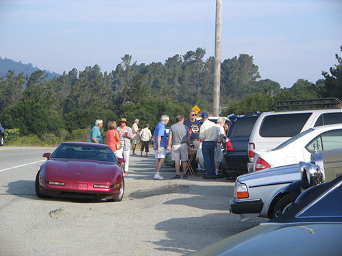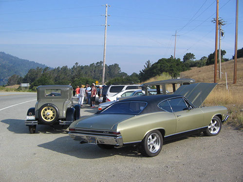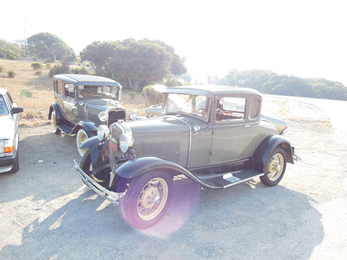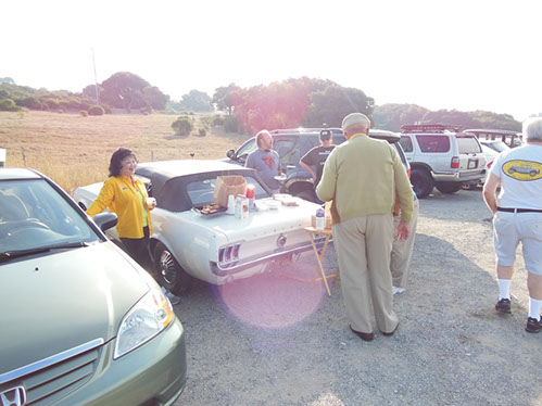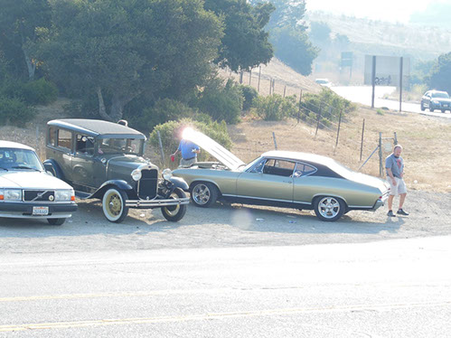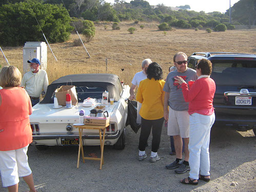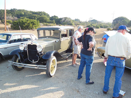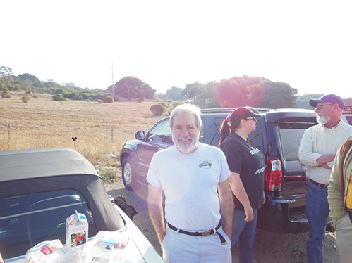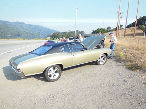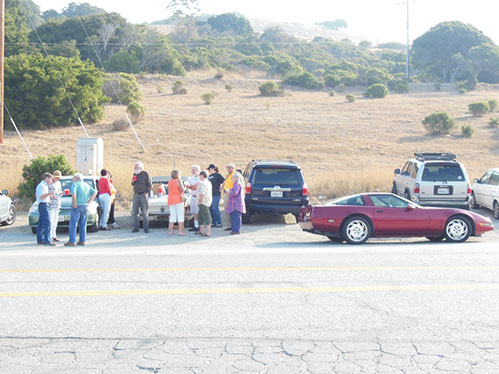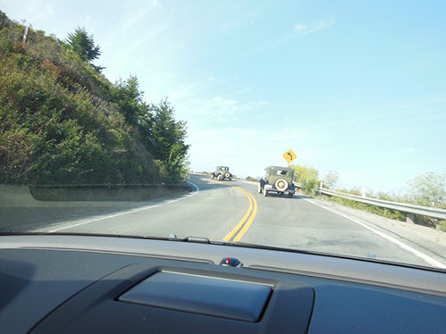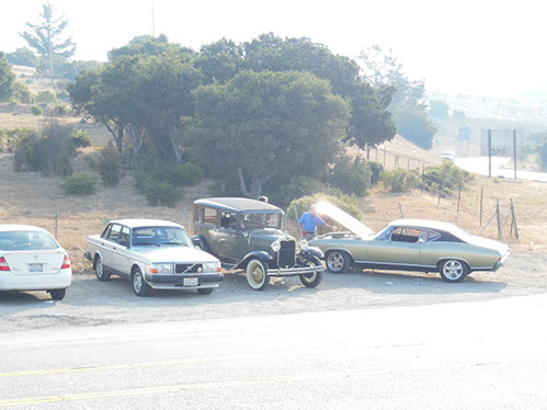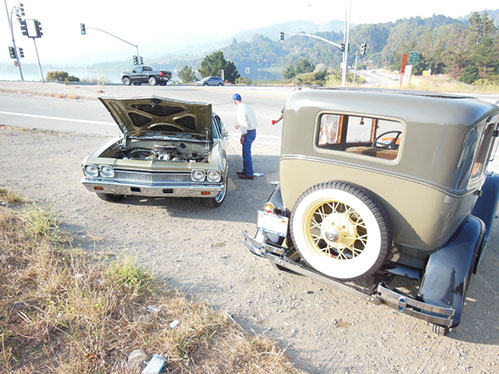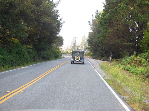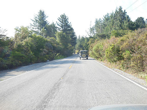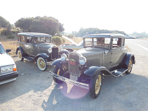 We started the day with traditional doughnuts and coffee at our meeting spot adjacent to Crystal Springs Reservoir. The vehicle count included three Model A Fords and a mixture of more modern makes that together totaled to about nine cars.