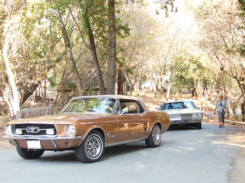 I had expected to spend about 40 minutes touring the Folger Stables but the parking lot was full and the only available parking was reserved for horses. So on we went into Woodside. By now the temperature had reached into the 90’s and we were getting hot and struggling to find parking. Our lunch reservations at Buck’s were at eleven. We were an hour early, just enough time to repair a blown manifold gasket. I think I might be able to unload the Bent Rod.