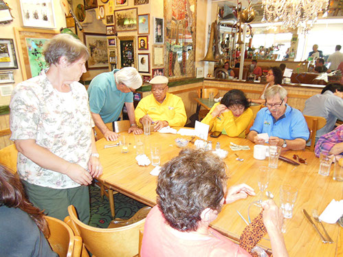 I checked with the restaurant manager. He said he could seat us at half past ten. Buck’s is a visual delight. There are collections, photos, and memorabilia of all types hanging from the walls and suspended from the ceiling. The food was excellent.