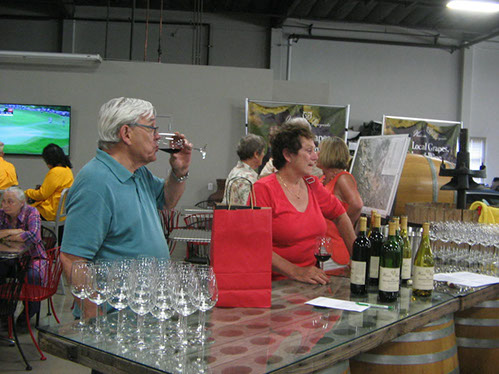 Next stop, AutoVino. AutoVino is a combination of Woodside Winery and a vintage auto collection under one roof. The cars are privately owned and are just on loan to the winery. Joan Peterson has a car in the collection. The first person who could identify her car was awarded with a bottle of Cabernet. Charlie and Victoria took home the prize.