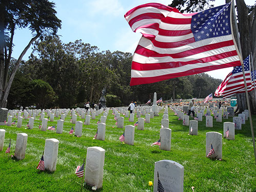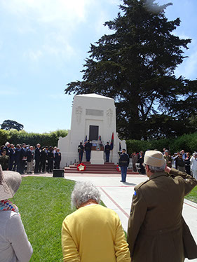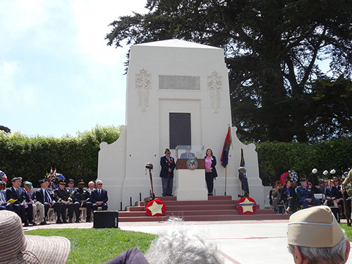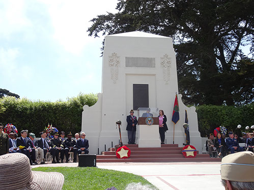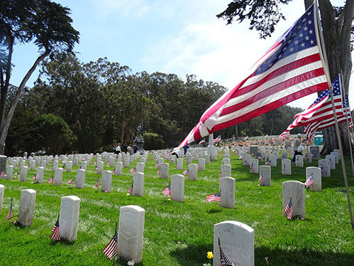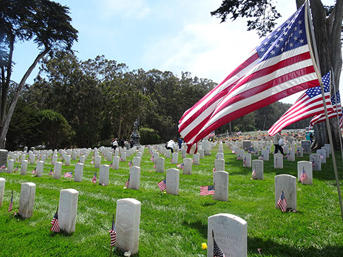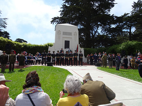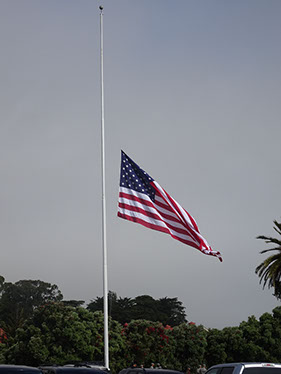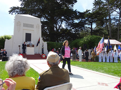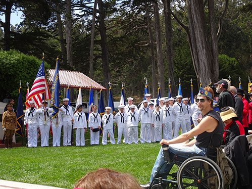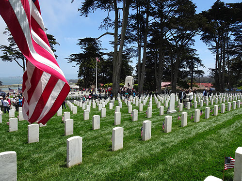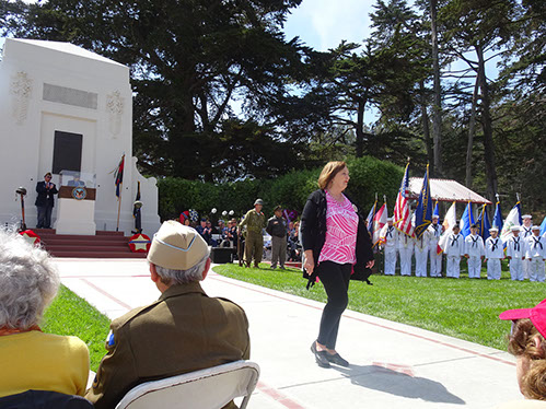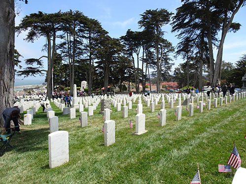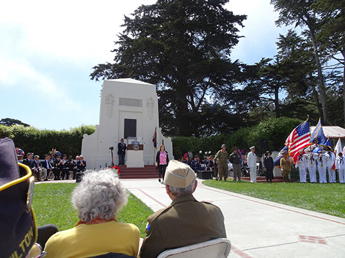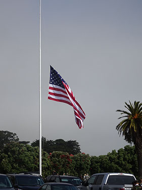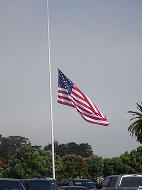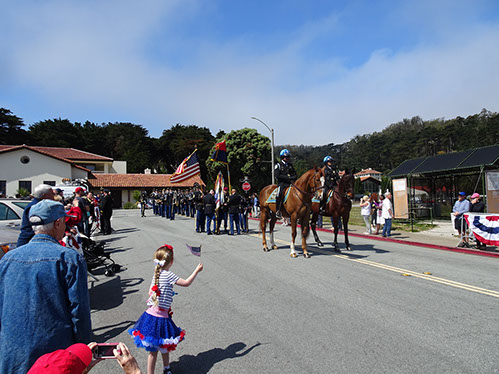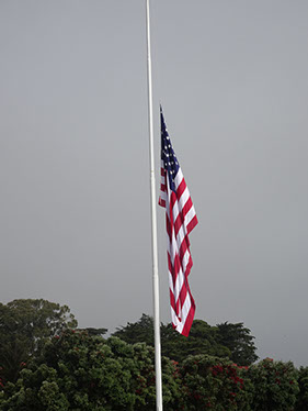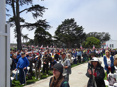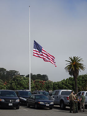 The 2016 Memorial Day began at 9 am near the flagpole on the Parade Ground in front of the Presidio Officers Club. The flag was raised to full height and then lowered to rest at half mast.