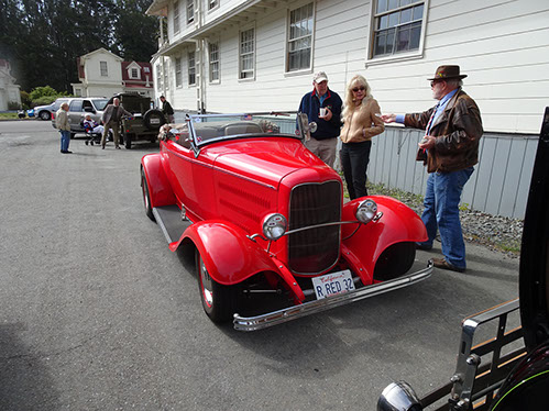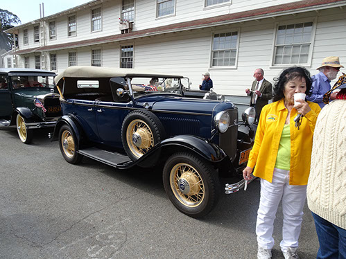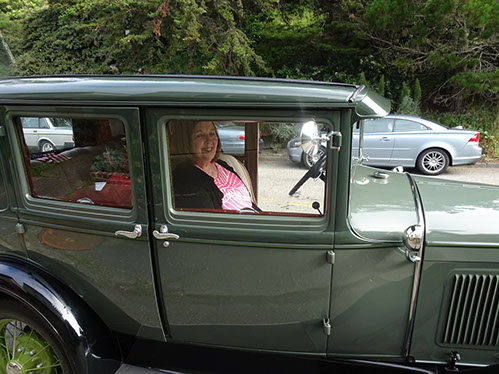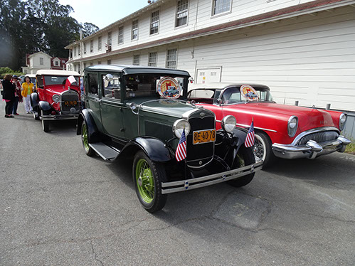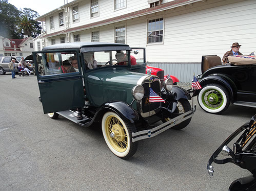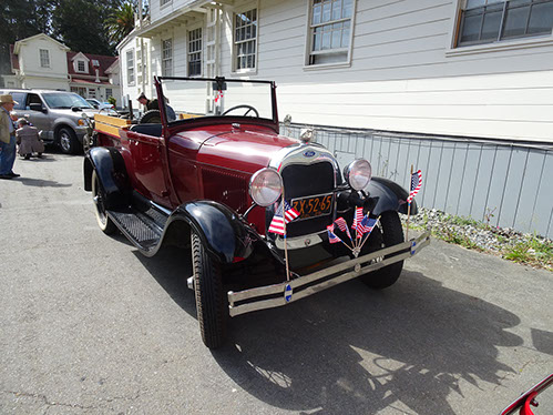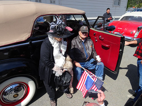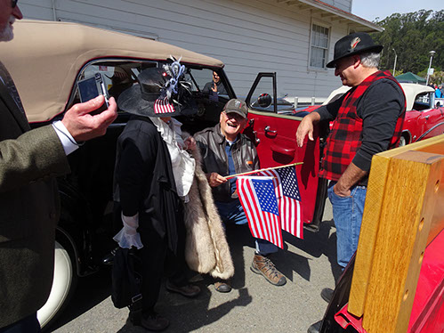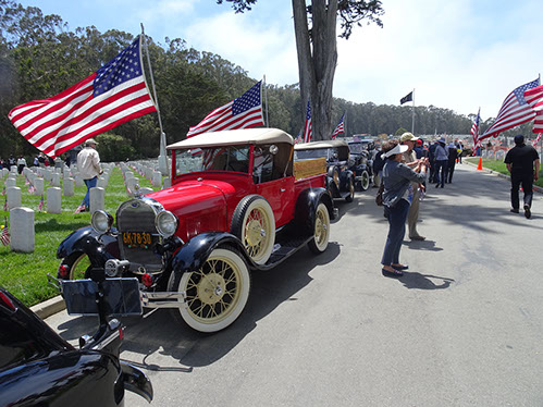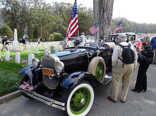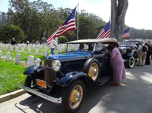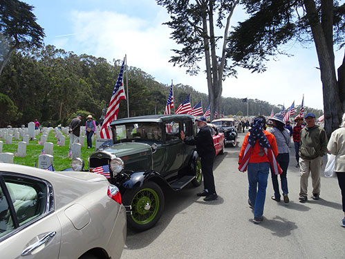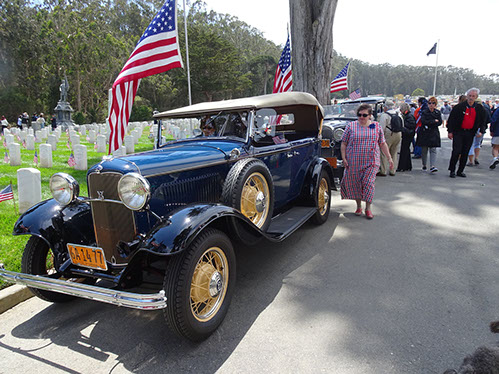 The cemetery was full of decoration. Flags of various sizes were flying all ‘round. We looped up through the cemetery and parked our cars behind the spectator seating. Everyone appears to enjoy seeing the cars. Again this year we got a lot of thumbs-up gestures and photos. Old timers came by to swap stories about the fun they had riding in the rumble seat of the family Model A Ford or to ask “What year is it?”