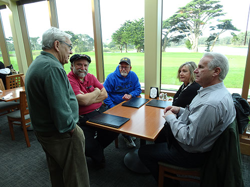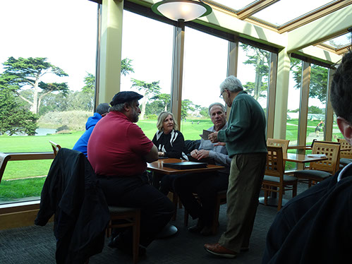 We arrived at Harding Park to find a crowd waiting for us. Some of us short-circuited the drive and went straight to Harding Park. We had an overflow crowd and the restaurant scrambled to accommodate our number. Eventually, we were comfortably seated, most at one large table and some of us at a smaller table nearby.