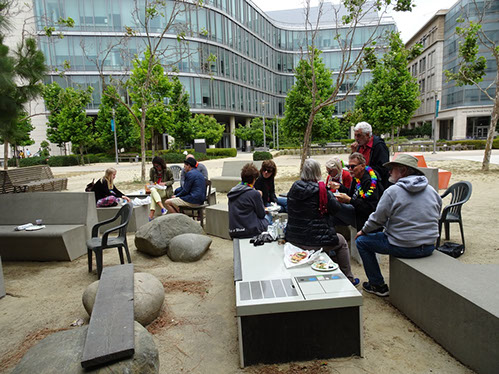 Past the grandstand we turned onto Eighth Street and the parade for us was over, much to soon. From Eighth Street we caravanned through town to the UCSF hospital complex in Mission Bay where we enjoyed a picnic lunch in a small park nestled between the hospital and large residential complexes that have come to dominate the 3rd Street corridor of Mission Bay.