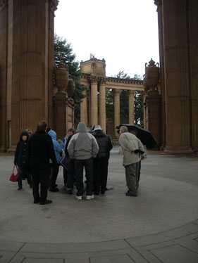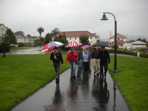 On Sunday November 20 a group of twenty hardy souls, including our youngest Club member fourteen month old Vincent Frueh, trekked through the rain from the Rod and Gun Club down the Great Highway through the Presidio to the Palace of Fine Arts.