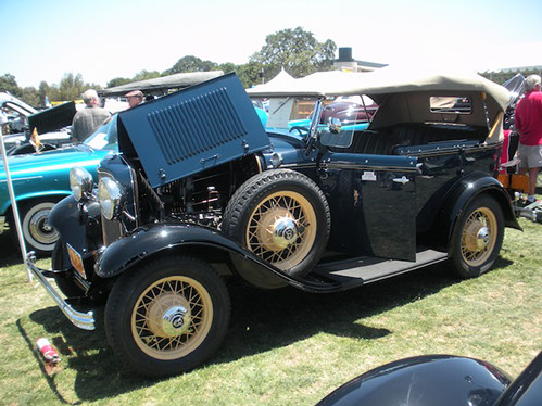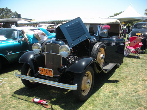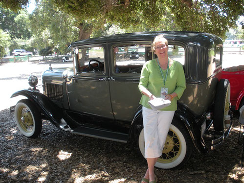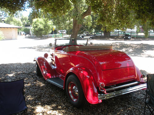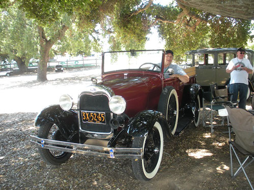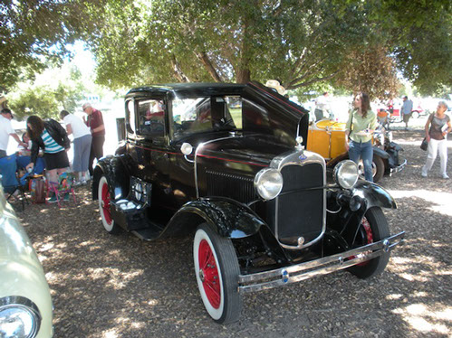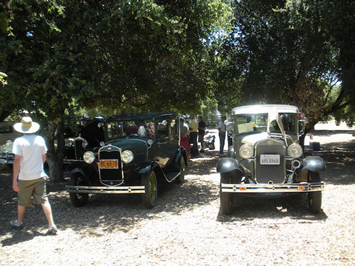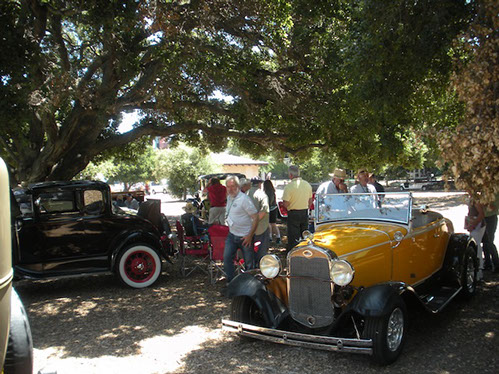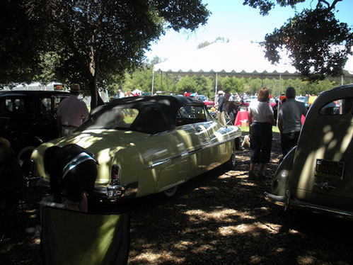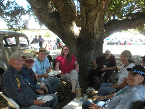 We cruised in about 9:30 and found a comfortable campsite under the trees. Walter prepared a table with cold cuts and salads. The Mahls brought cakes, both homemade and store bought, and salads. Gary brought a cooler filled with cold drinks. After lunch the options were to venture out and view the show or simply relaxing in the shade. Several long time friends and Club members stopped by to say hello. Gregory Timm who lives in Pescadero stopped by to offer the Club a lunch and a guided tour of Pescadero. Car shows have a way of opening doors and bringing friends together.