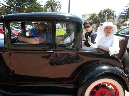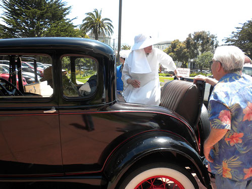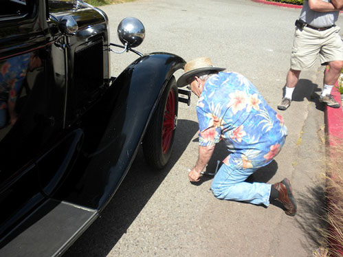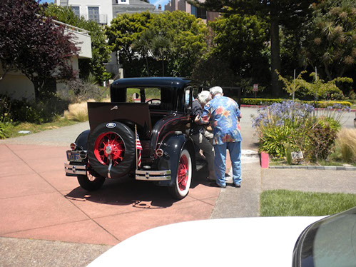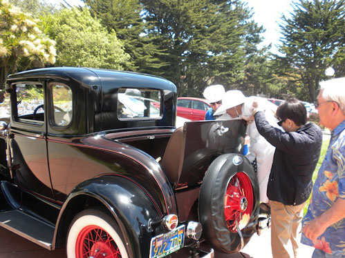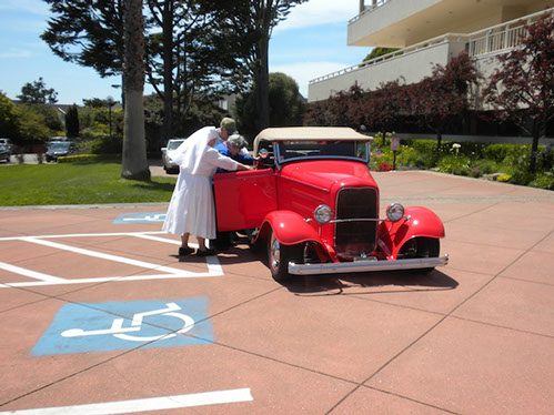John Bettencourt and Mike Cunneen brought the most popular rides. Everyone liked the sporty open car look. There is something about the wind in your face that makes the ride feel more real. Mike broke away from an El Camino A’s tour to join us at St. Anne’s. We were glad to see him come. His car can hold four people easily without to much bending and stretching to get in and out.