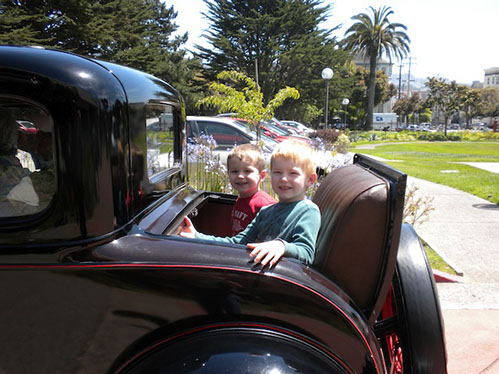 The ride is short. We travel up Arguello into the Presidio past the golf club to the lookout point overlooking the bay and Alcatraz. The ride takes us by Senator Feinsteins’ old home and then back down the hill to St. Anne’s. For most, one ride is enough. Others choose another car and take a second and sometimes third ride.