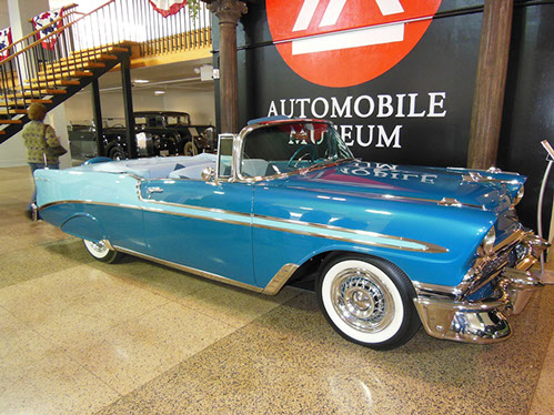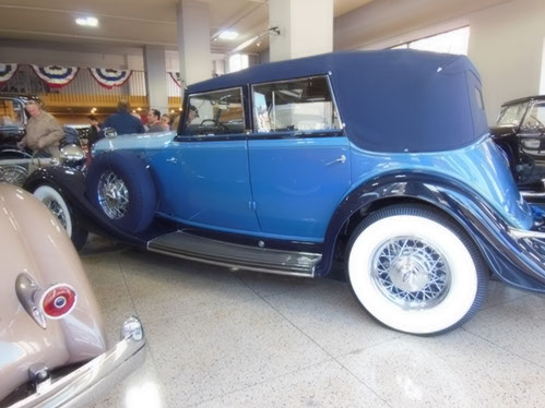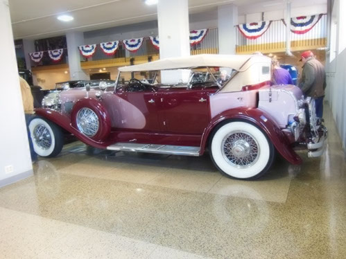 The collection includes everything from Auburns, a Daimler, Pierce Arrows, Packards, Dusenbergs, to a beautiful ’56 Chevy convertible, a Messerschmitt, MG’s and more. All of the cars are absolutely gorgeous and look as though they just rolled out of the showroom.