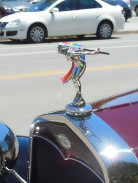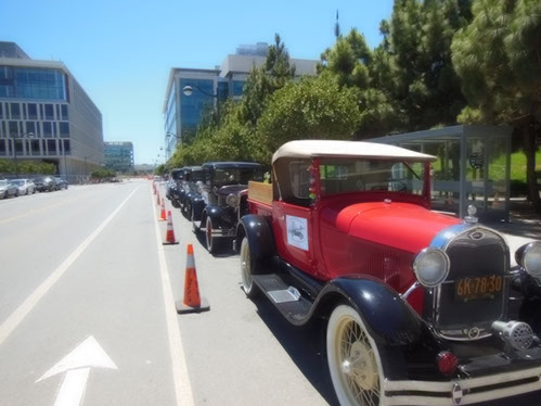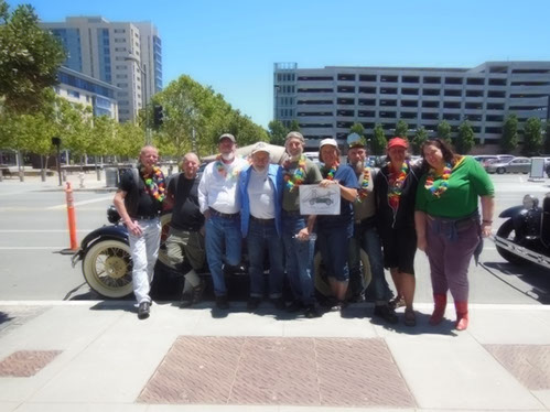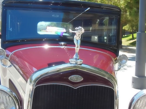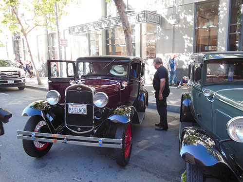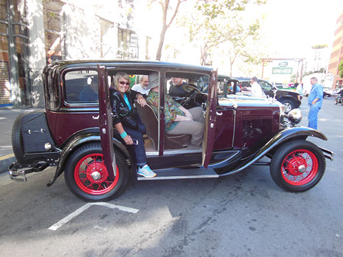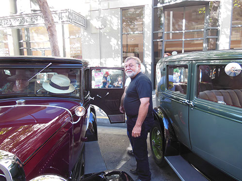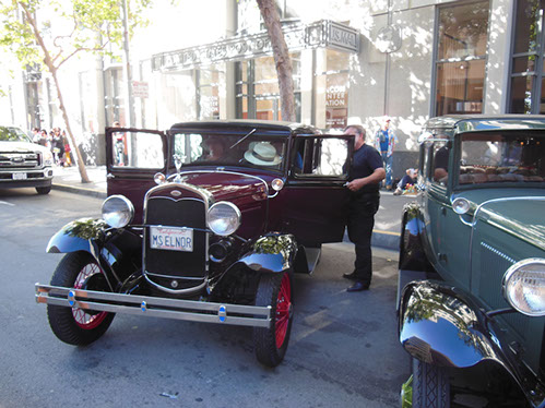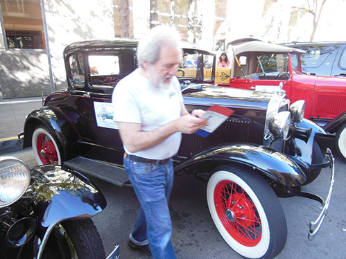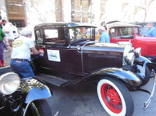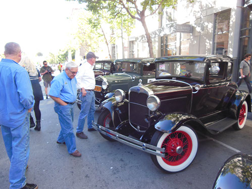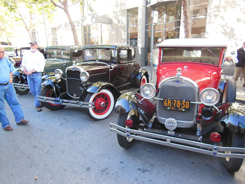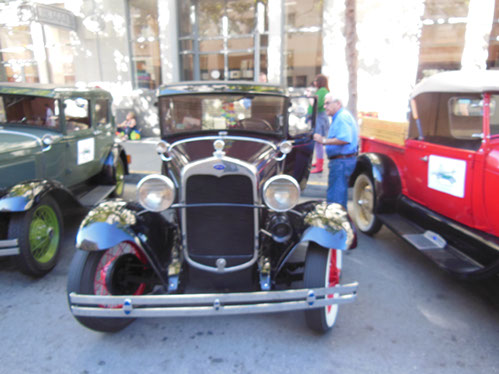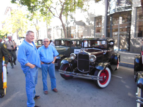 This year we had four cars in the Parade. Terry and Tom Machado came down from Stockton in their beautiful sedan Eleanor. Steve Owsley drove Walter Caplan’s equally grand sedan. Walter drove Tom Escher’s red ‘29 Pickup in the mix and I drove my not so lovely but reliable coupe.