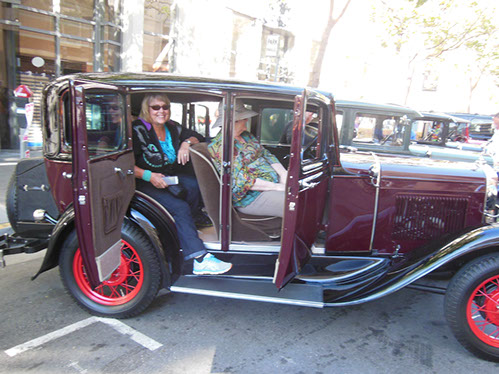 Our cars were loaded with happy parade-goers. Kristine Zaback rode with me. Kristine did most of the waving and picture taking. I kept an eye on the motometer and tried not to slip the clutch more than necessary. We avoided any trouble but the classic car ahead of us, carrying Congresswoman Nancy Pelosi, stalled and she was whisked away by her security detail only to reappear at the reviewing stand for a short interview. Her family and aides walked on to the finish.