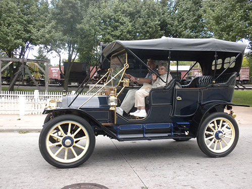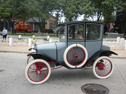 The Old Car Festival at Greenfield Village was frosting on the cake. Cars ranging from the 1890’s to 1932 cruised the streets controlled only by Keystone Cops in blue uniforms trimmed in white gloves. The smart folks rented three wheeled electric carts and cruised the Village effortlessly. The rest of us slow folks slugged it out on foot. There was a surprise at every turn. We had a private lesson on how to properly crank start a Model T Ford. We learned the difference between a High Boy and a Channeled Rod. We learned that Edison and Westinghouse were competitors. Edison liked DC and Westinghouse was a fan of AC. Alternating Current eventually won the day. We learned that the first Hybrids were produced around 1915 and the first Studebaker production cars were electric.