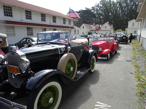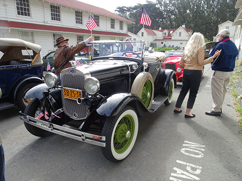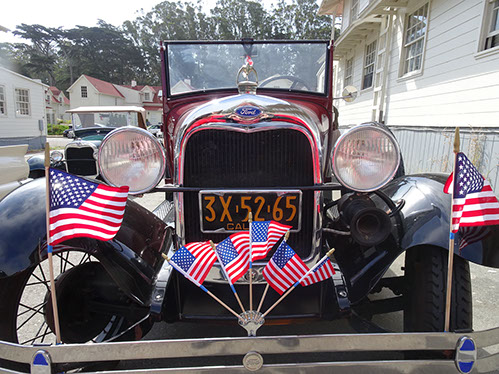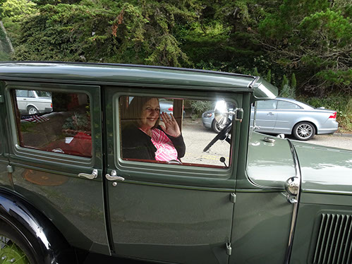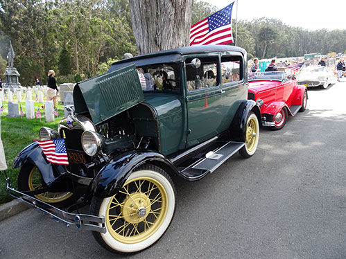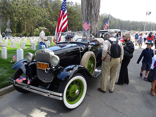 The cemetery was full of decoration. Flags of various sizes were flying all ‘round. We looped up through the cemetery and parked our cars behind the spectator seating. Everyone appears to enjoy seeing the cars. Again this year we got a lot of thumbs-up gestures and photos. Old timers came by to swap stories about the fun they had riding in the rumble seat of the family Model A Ford or to ask “What year is it?”