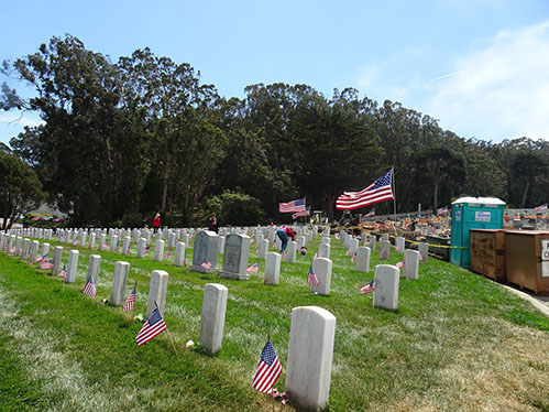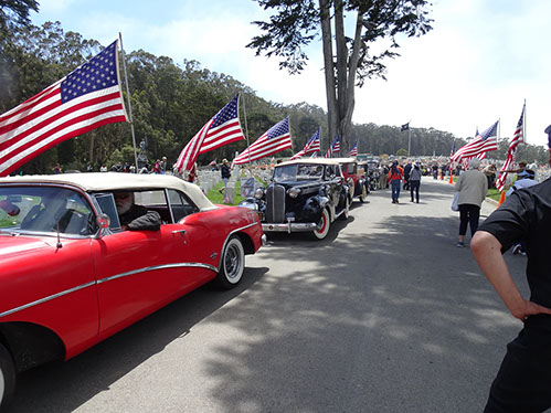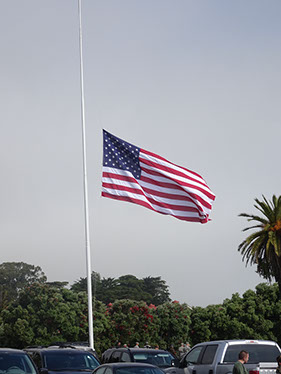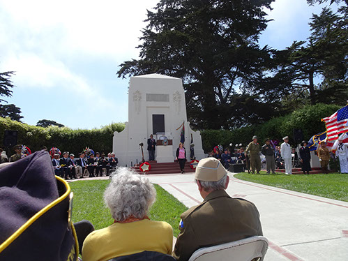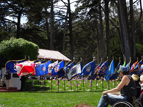 The 2016 Memorial Day began at 9 am near the flagpole on the Parade Ground in front of the Presidio Officers Club. The flag was raised to full height and then lowered to rest at half mast.