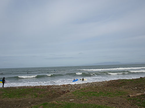 The day was clear and bright. The surf was up and surfers with their boards crowded the parking area. We set up the Soup Kitchen away from the guys and gals in wet suits on the hash marked no parking area and dispensed our soup. There was a cool breeze off the ocean – we all enjoyed a sip of warm Clam Chowder.
