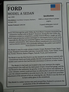 Much to our surprise, the tour included a stop at the Southward Car Museum in Paraparaumu, New Zealand. The Southward is home to the southern hemisphere's largest private car collection and was started by Sir Len and Lady Vera Southward in 1956 with a Ford Model-T for which they paid £40. The museum opened to the public in December 1979. The collection contains automobiles from every era, vintage tools, fire engines, aircraft, motorcycles, and even a bicycle built for three-and-a-half. There was even the 20 millionth Model-A on exhibit. Given that the tour description didn't include this little stopover, it was a very pleasant surprise indeed.