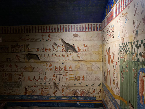 Our visit to the Rosicrucian Egyptian Museum was informative and educational. The museum was founded by Harvey Spencer Lewis in 1928 with his own collection, which began with one small statue in 1921. Today the museum contains over four thousand artifacts, the largest display of items from the Egyptian period in western North America. The collection taken as a whole gives a wonderful view into Egyptian life. The guided tour of a reconstructed tomb from the period dispels the idea that Egyptians were fixated on death and the afterlife. Certainly this was true to some degree but the inscriptions on the tomb walls are a celebration of life. They tell the story of the deceased, what they did for a living, what they did in their leisure time, and their relationship to their god.